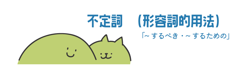 不定詞の形容詞的用法は、直前の名詞や代名詞を修飾し「~するための」「~すべき」と訳されます。